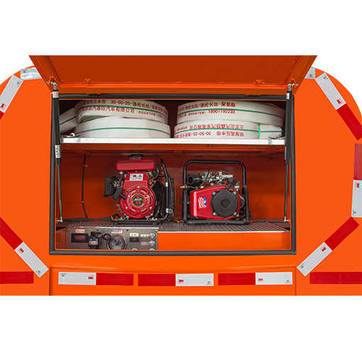 二:配有罐體4mm鋼板,內(nèi)設(shè)有橫向防波板,罐體陰極電泳經(jīng)防腐處理、斷軸取力器、粘貼防火標識、車身粘貼“森林防火供水車”字樣、車身配備多個儲物箱,配備過濾器、水帶、水槍、水泵、吸水管、前置電動絞盤、警燈、警報、宣傳擴音器。