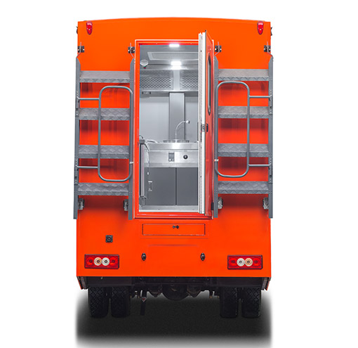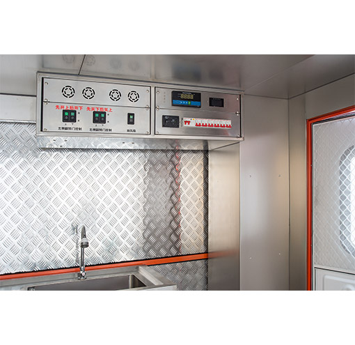 車輛配備:軍工級車載二聯(lián)灶(一炒灶、一湯灶)、抽油煙機、大容量電壓力鍋(電飯煲)、開水器、冷藏柜、儲物吊柜、不銹鋼洗菜料理臺、餐具套裝及行車供電系統(tǒng)。