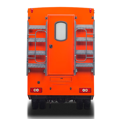四輪驅(qū)動、動力轉(zhuǎn)向、排氣制動、斷氣制動、可調(diào)方向盤、空調(diào)、多媒體音響、ABS制動行駛記錄儀兼北斗系統(tǒng)接口、遙控中控鎖、電動玻璃升降器、車身噴涂防火標識、雙側(cè)液壓電動展開。
